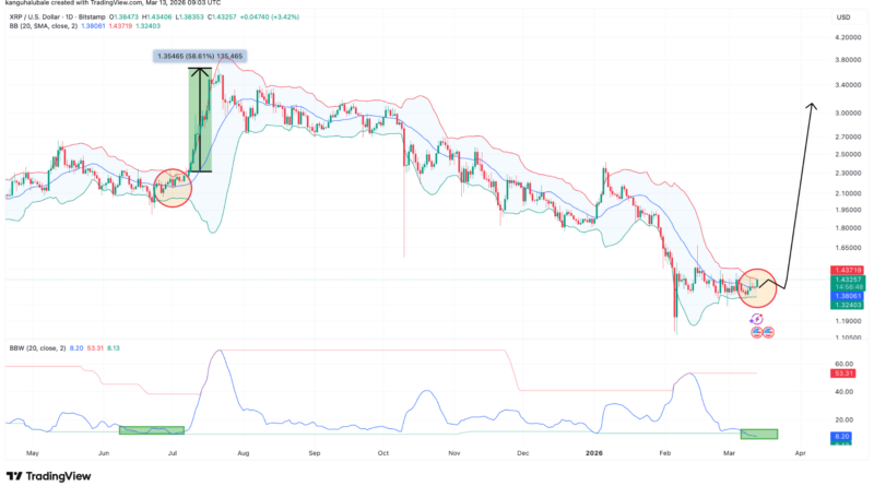 XRP’s (XRP) price was up 3% on Friday to trade above $1.40 as several technical and onchain indicators suggested it