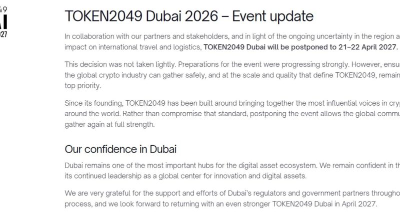 WeiterlesenThe crypto conference organizer said tickets will remain valid for the rescheduled April 2027 event, with holders also able to