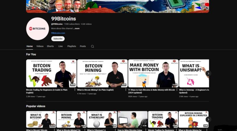 99Bitcoins is a popular YouTube channel founded around 2015 and has grown to over 720,000 subscribers. 99Bitcoins focuses on Bitcoin education, covering fundamental cryptocurrency topics such as tutorials, security tips, wallet management, buying and selling, and avoiding crypto scams.