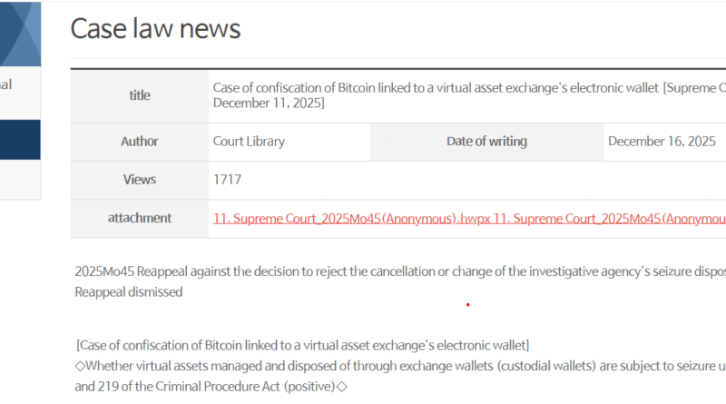 In January, South Korea’s Supreme Court ruled that Bitcoin held in centralized exchanges can be seized by investigators.