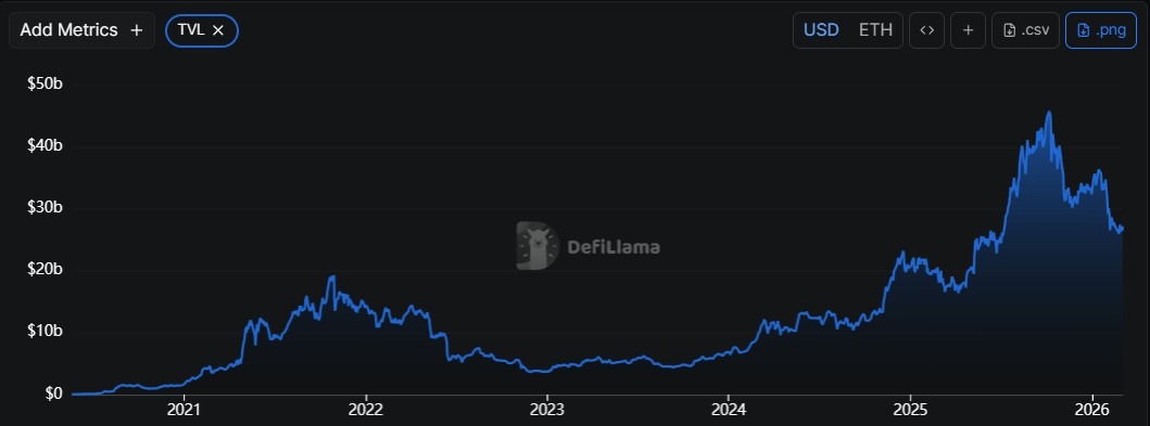 According to data from DeFiLlama, Aave holds about $26.51 billion in total value locked, making it one of the largest decentralized finance protocols by deposits.