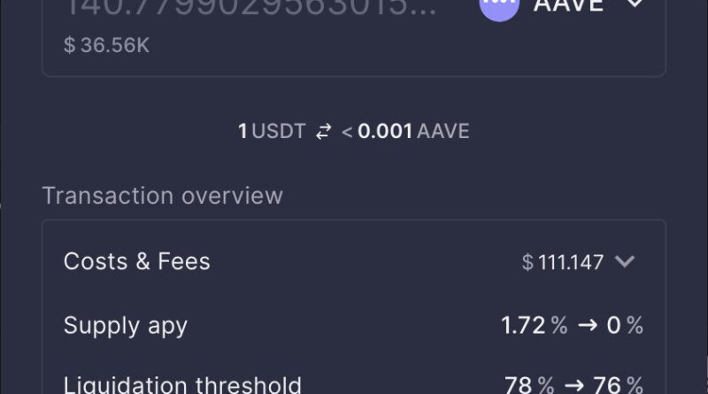 The user also ticked a confirmation box stating, “I confirm the swap with a potential 100% value loss,” Aave said.