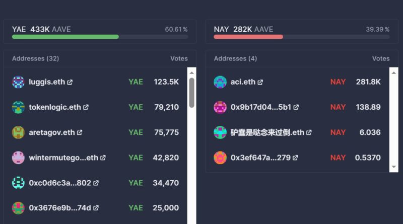 The rollout follows a Snapshot vote that gained near-unanimous support for a subsequent Aave Improvement Proposal (AIP), a binding onchain vote that opened on March 26 and closed on Sunday. The proposal passed with about 433,000 votes in favor, or roughly 60%, versus about 282,000 votes against, or nearly 40%.