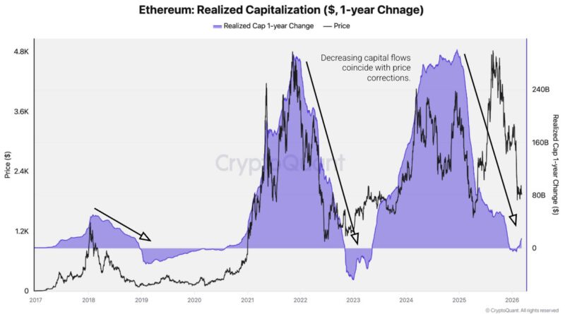 Moreno added that the yearly change in Ethereum’s realized capitalization has turned negative, showing that capital is exiting from Ether.