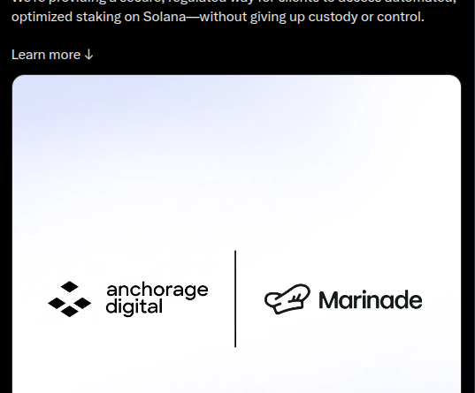 According to Thursday’s announcement, the integration gives clients direct access to Marinade’s staking strategies within Anchorage’s custody and wallet infrastructure, including its Porto self-custody wallet, without requiring external applications.