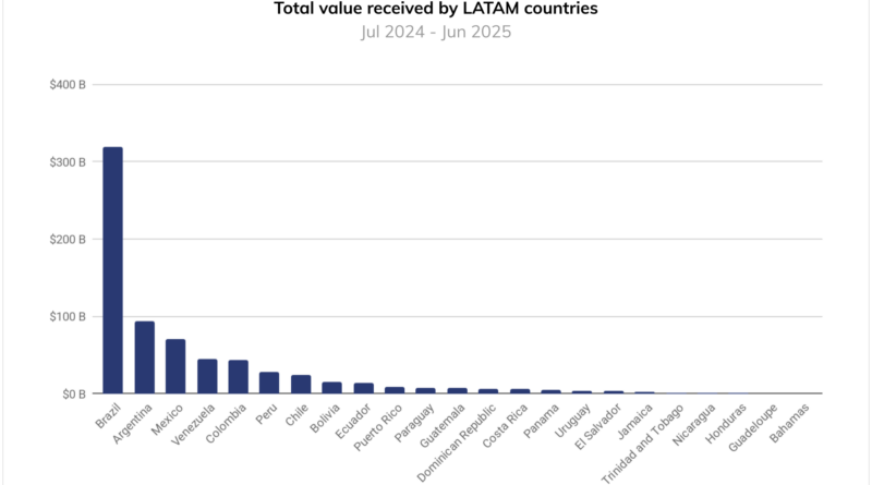 Latin America has emerged as one of the fastest-growing crypto regions, recording nearly $1.5 trillion in transaction volume between mid-2022 and mid-2025, with monthly activity peaking at $87.7 billion in December 2024, according to Chainalysis’ 2025 Geography of Crypto Report.