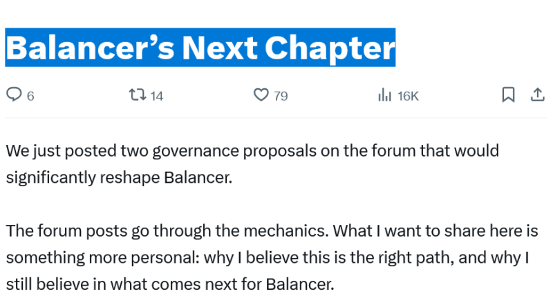 “Balancer still has real value to build from here. If we can make this transition work, we have a real chance to build a stronger and more sustainable protocol on the other side of it,” Hardt said.