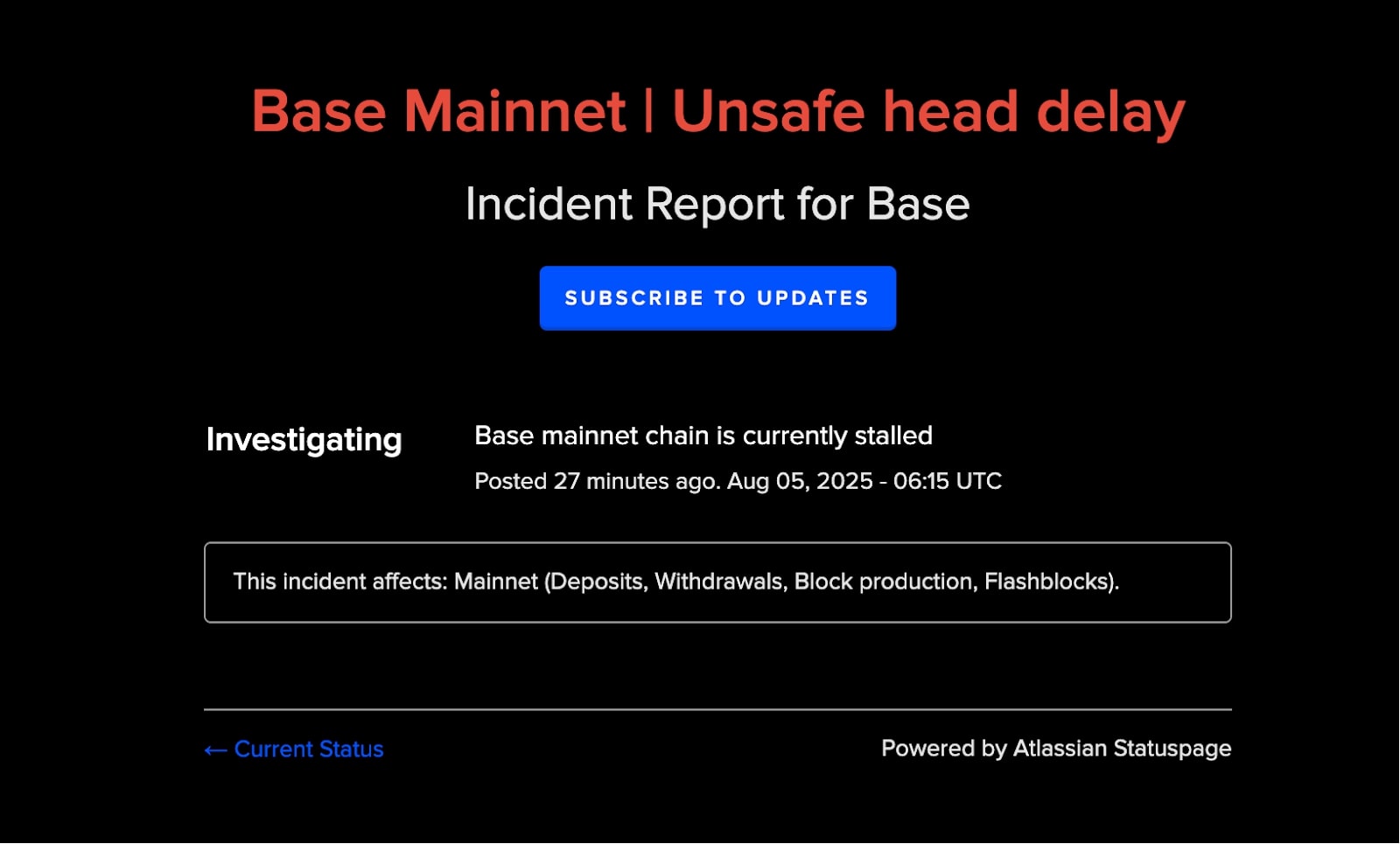 While Base’s status page later flagged an “unsafe head delay” as the root cause, specific technical explanations remain vague. Coinbase has yet to publish a full post-mortem or address whether recent upgrades such as Flashblocks, its new preconfirmation feature, played a role in the disruption.