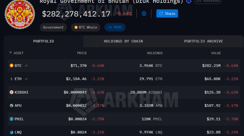 Bhutan has not publicly commented on the recent disposals, and the activity is inferred from wallet labels and transaction patterns tied to the government and Druk Holding & Investment.