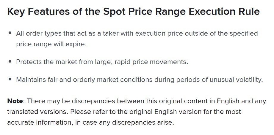 Unlike stop-loss or limit orders set by individual users, Binance said PRER is an exchange-level market protection mechanism applied during order matching. This means trades can be restricted or partially canceled based on system-defined price limits, regardless of user intent.