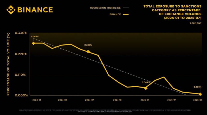 Binance says sanctions exposure has declined 97% since 2024