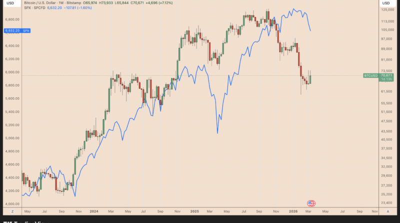 As of Saturday, BTC/USD had risen more than 7% over the past week to around $70,625. Over the same period, the benchmark S&P 500 (SPX) was down 1.60%.