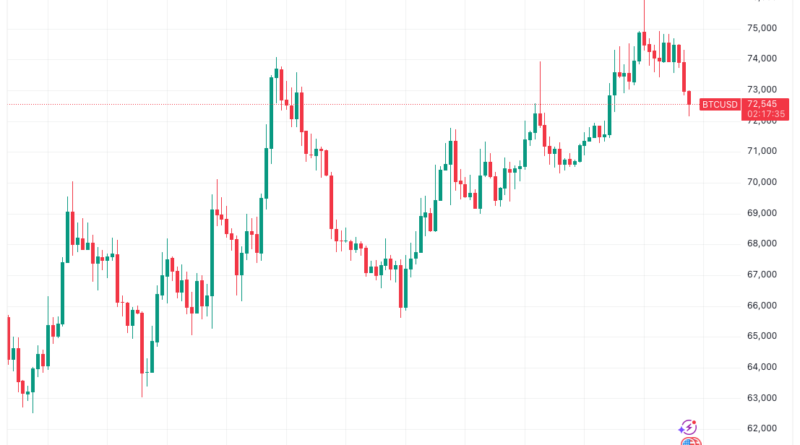 Data from TradingView showed $72,000 coming back into focus for BTC price action after the February print of the Producer Price Index (PPI).