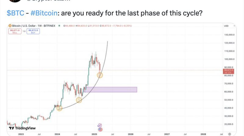 Trading advisor Crypto Fella also expects a further dip, placing the target around the $78,000 level before BTC rallies, anticipating the leading cryptocurrency’s rise to a new ATH above the $120,000 mark.