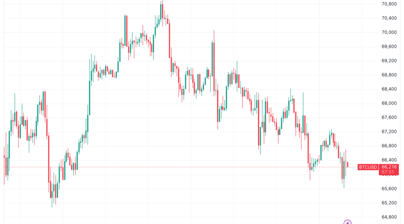 Data from TradingView showed BTC/USD acting within an increasingly narrow range, with the day’s lows at $65,620.