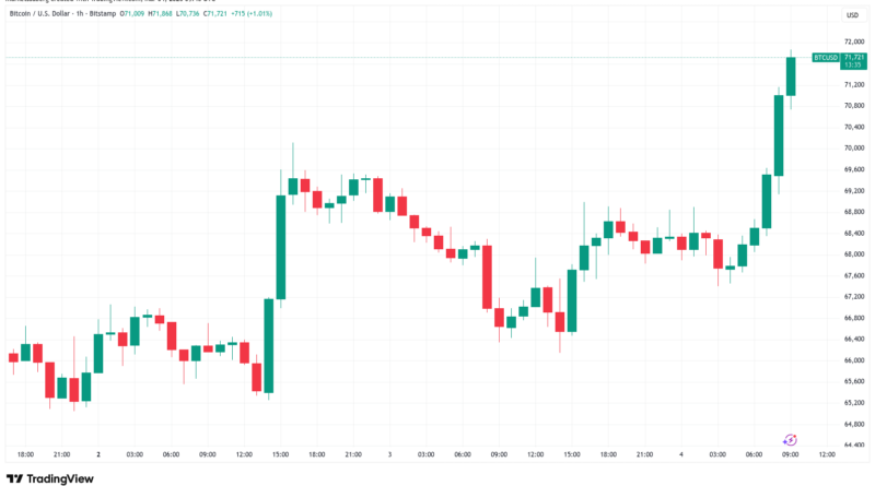 Bitcoin price nears one-month high as bulls propel BTC toward $72K