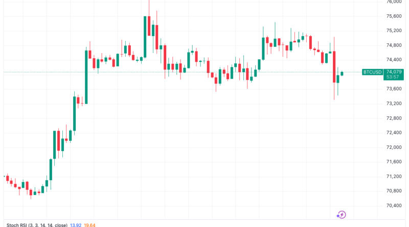Bitcoin stays locked on $74,000 after its local highs preceded a new record for the S&P 500.