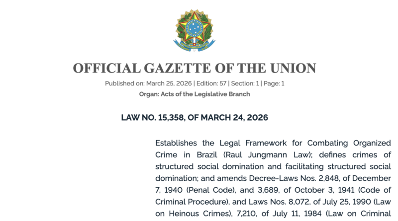 On Wednesday, Brazil’s legislative branch published Law No. 15.358, establishing a legal framework for combating organized crime. The law allows authorities to prohibit transactions on crypto exchanges by treating digital assets as instruments in a crime, and confiscate crypto to be used to fund public security.