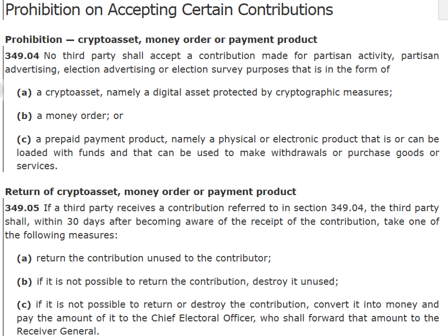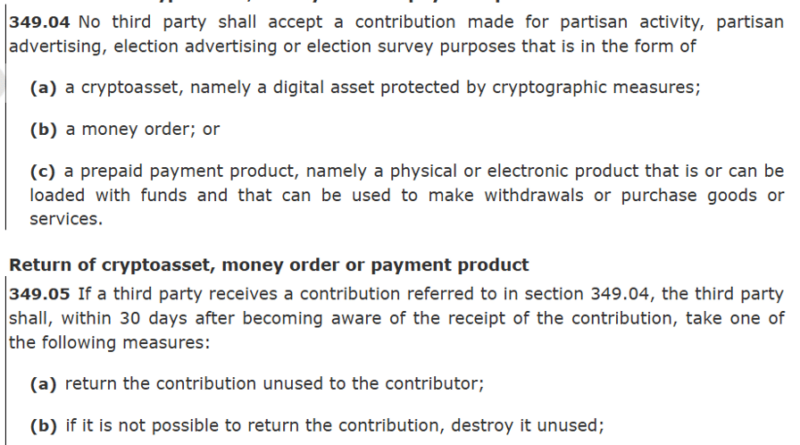 Canada advances bill to ban crypto political donations
