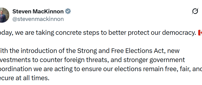 “With the introduction of the Strong and Free Elections Act, new investments to counter foreign threats and stronger government coordination, we are acting to ensure our elections remain free, fair and secure at all times,” he said.