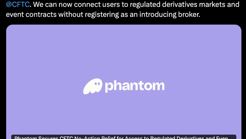 “With thanks to the CFTC’s willingness to open their doors to facilitate innovation, we proactively engaged with the CFTC to seek clarity on how a non-custodial interface like Phantom could offer access to regulated markets through a registered partner, without acting as an intermediary that needs its own registration,” said Phantom. “Rather than building first and seeking forgiveness later, we took a different approach to give our users safe and reliable ways to access traditional financial markets.”