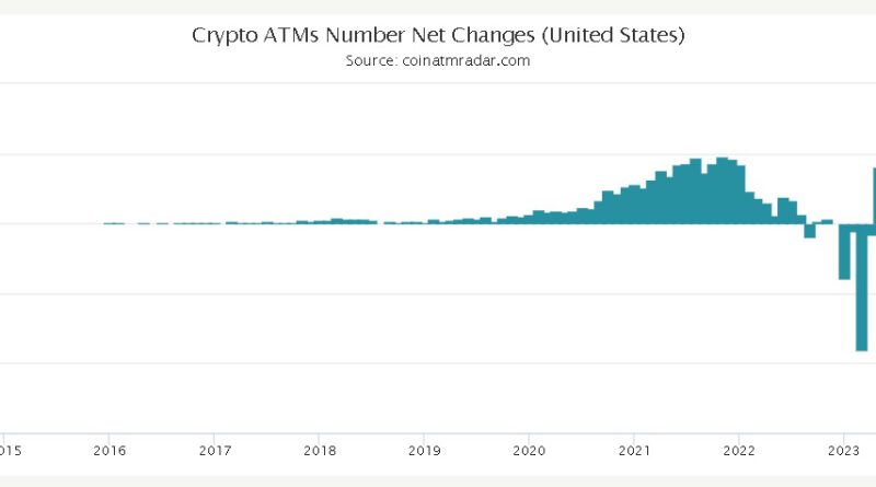 Net Change in the Number of Cryptocurrency Machines Installed and Removed Monthly in the US. Source: Coin ATM Radar
