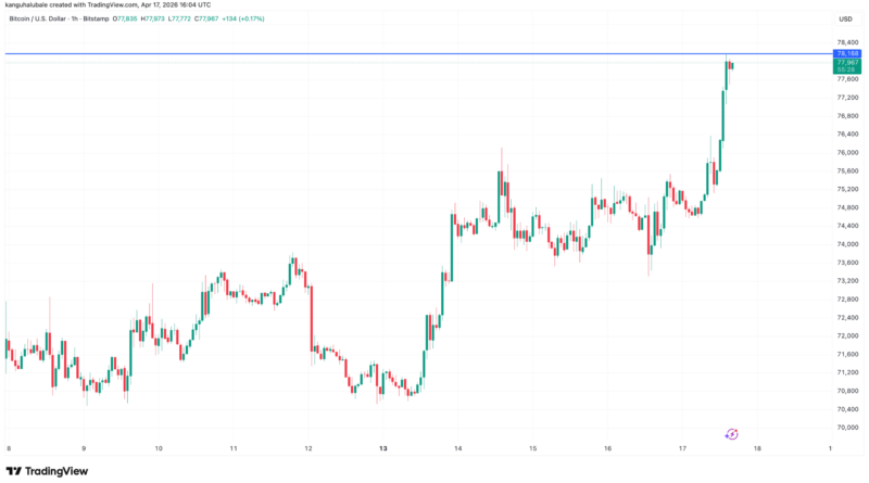 Bitcoin (BTC) rallied above $78,000 to hit another 10-week high on Friday as crypto and equity markets reacted to cooling tensions in the US and Israel war in Iran. The rally above range highs also resulted in a large liquidation of leveraged Bitcoin positions.