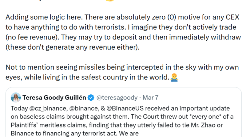 CZ says CEXs have ‘zero motive’ to aid terrorists as court dismisses terrorism case