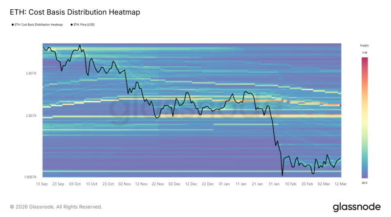 Data from Glassnode indicated that ETH’s cost-basis distribution heatmap shows a heavy accumulation near $2,800, where more than 3 million ETH were previously purchased.