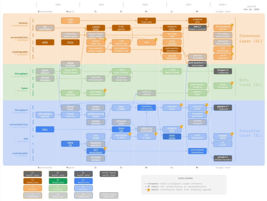 Native account abstraction is expected in the second half of 2026, according to the “Strawmap.” Source: Ethereum Foundation