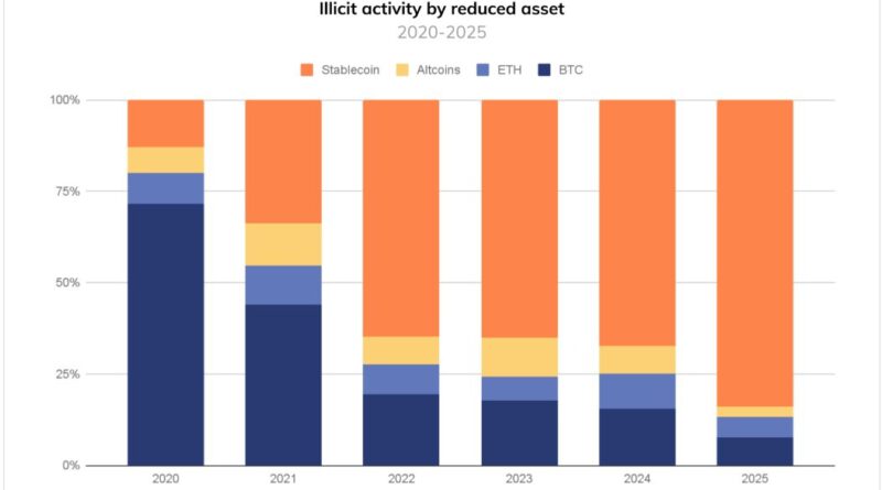 On Jan. 9, blockchain analytics firm Chainalysis found that illicit crypto addresses received at least $154 billion in 2025, with stablecoins accounting for 84% of illicit transaction volume.