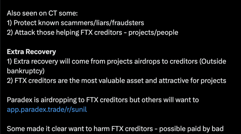 “FTX creditors are not whole,” FTX creditor and creditor advocate Sunil Kavuri said in response to the reimbursement plan.