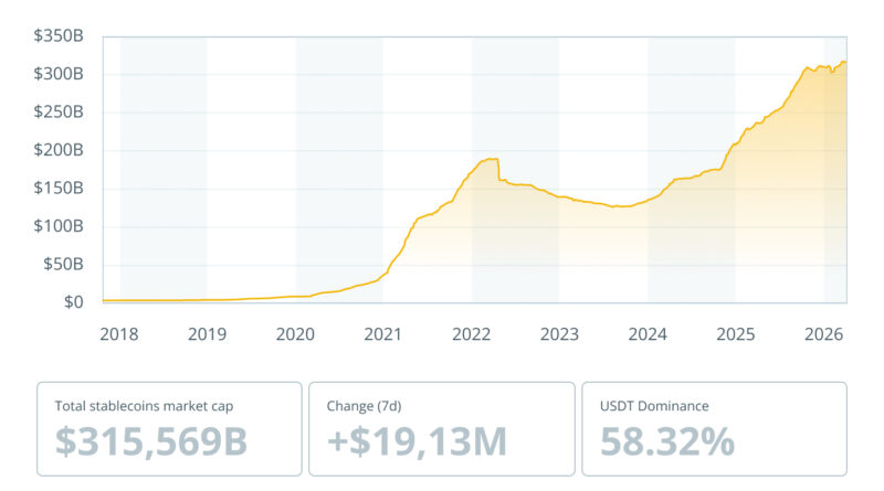 As of March 2026, the stablecoin market had reached a significant milestone, with its total valuation climbing to approximately $314 billion, according to DefiLlama data. This growth followed a breakout year in 2025, during which transaction volumes reached a record $969.9 billion in a single month. Experts now project that monthly volumes are on track to surpass the $1 trillion mark by the end of 2026.