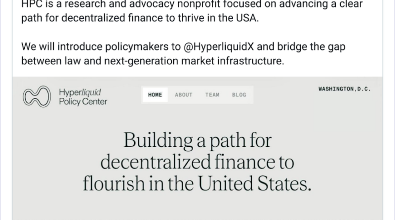Crypto platform Hyperliquid has launched a new advocacy organization to push policy changes related to decentralized finance in Congress.