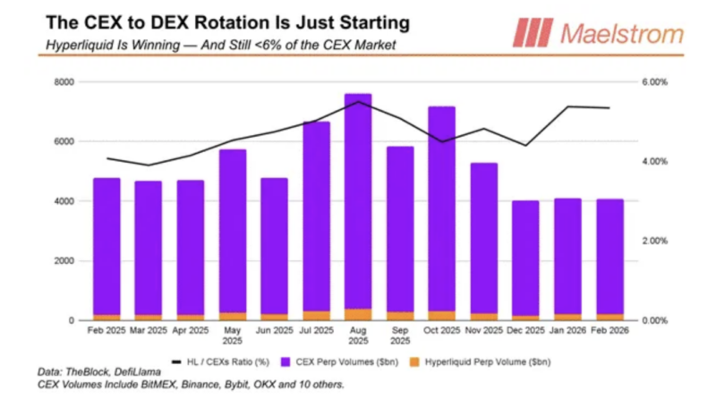 In a post published on Monday, Hayes said that if Hyperliquid keeps pulling derivatives volume away from centralized exchanges (CEX) and expands its product suite, HYPE could climb roughly fivefold from around $30.