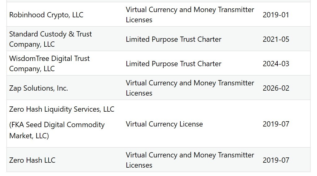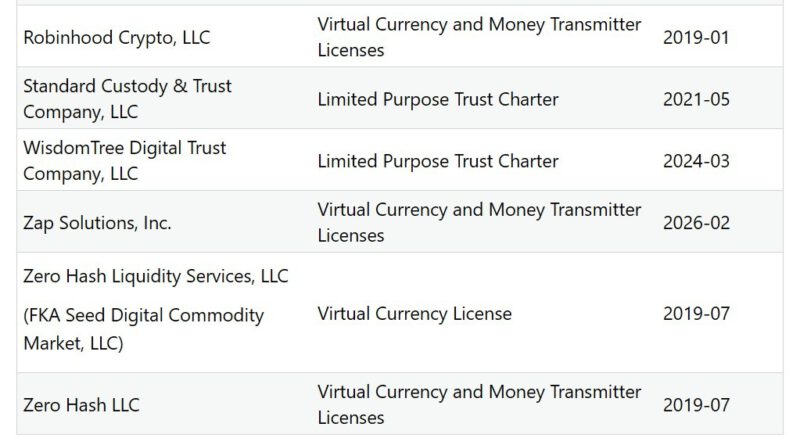 Others holding BitLicenses in New York include MoonPay, Coinbase, eToro, Robinhood and Circle, according to NYDFS records.