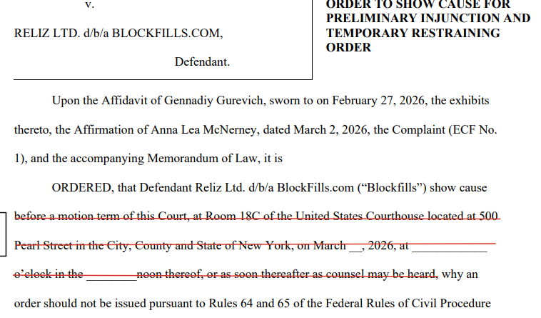 BlockFills must respond to the court order by March 17, 2026. The order comes three weeks after BlockFills halted withdrawals in February.