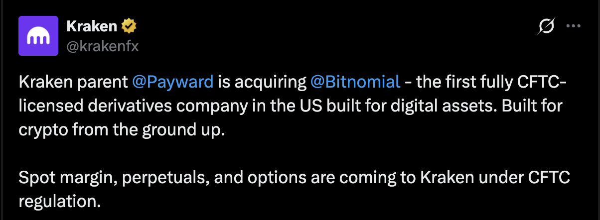 Kraken’s parent company to acquire CFTC-regulated exchange Bitnomial