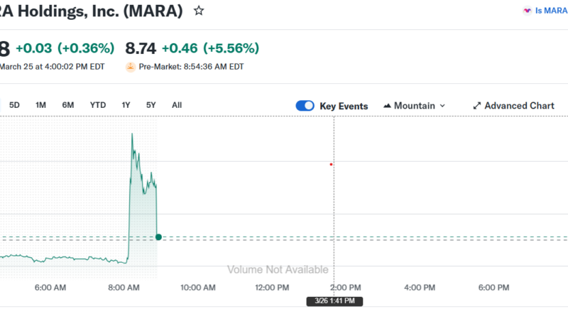MARA’s premarket share price reacted positively to the news, rising from yesterday’s close of $8.25 to $9.29, a gain of around 12.6%, and traded at $8.74 (+5.56%) at the time of writing, according to data from Yahoo Finance.