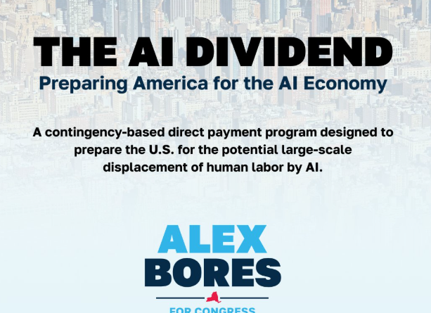 A New York state assemblymember and congressional candidate has proposed an artificial intelligence dividend program for US citizens to address potential job losses stemming from advances in AI technology.