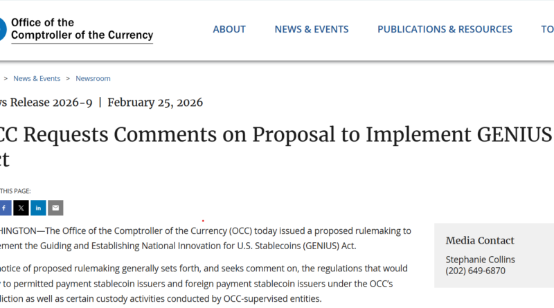 The US Office of the Comptroller of the Currency (OCC) has dropped a 376‑page proposal to implement the Guiding and Establishing National Innovation for US Stablecoins (GENIUS) Act that looks to settle the ongoing stablecoin yield fight.