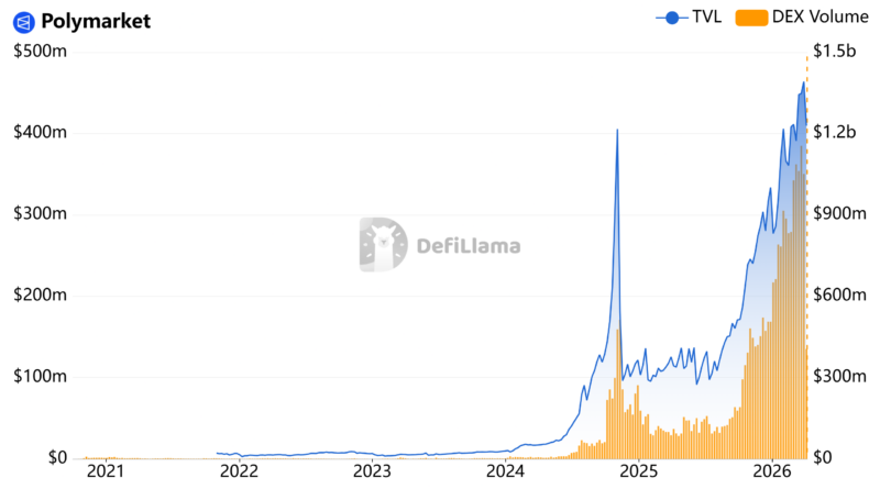Polymarket has recently returned to activity levels seen during the US presidential election. Source: DeFiLlama