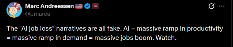 On March 6, venture capitalist and Netscape co-founder Marc Andreessen said on X that fears about AI job displacement were overblown.