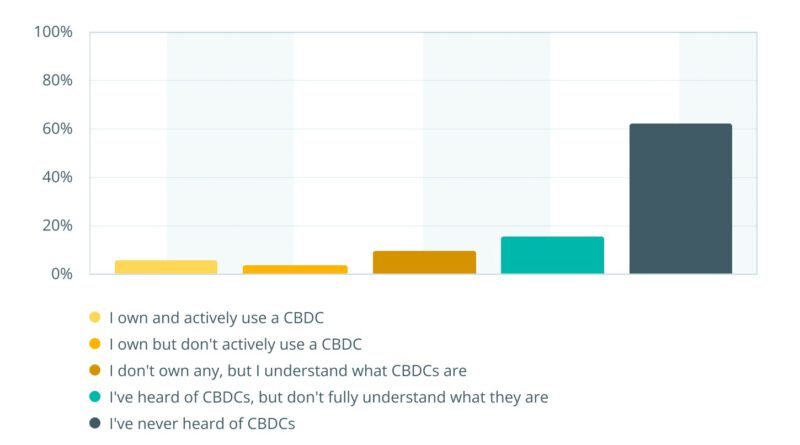 According to a June 2025 survey from fintech firm Aevi, 61% of Americans haven’t even heard of a CBDC. The number is even higher among older respondents, with over 70% of 55- to 64-year-olds having never heard of one.