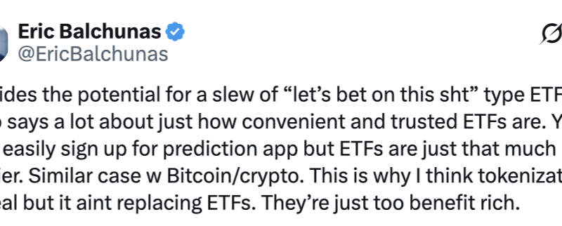 “Opens up huge door to all kinds of stuff,” Balchunas said, adding that prediction market applications are easy to sign up to, but ETFs are “just that much easier.”