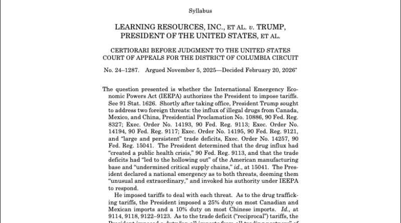 The Supreme Court of the United States (SCOTUS) issued a ruling on Friday striking down most of US President Donald Trump’s tariffs, with six of the nine Supreme Court justices ruling that the Executive Branch lacks authority to levy tariffs under the International Emergency Economic Powers Act (IEEPA).