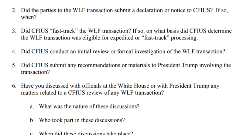 The lawmakers wrote that the transaction reportedly occurred days before Donald Trump’s inauguration and would make the foreign fund the firm’s largest shareholder and its only publicly known outside investor. They asked Bessent, who chairs CFIUS, to confirm whether the committee was notified and, if necessary, conduct a “comprehensive, thorough, and unbiased investigation.”