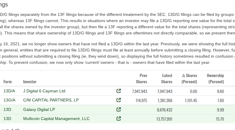 Public filings indicate that only six institutional investors in Forward Industries hold enough shares to sell that volume back to the company. According to filings data compiled by Fintel.io, one of those holders is Galaxy Digital LP (8.68 million shares, as of Sept. 18, 2025) and another is Galaxy Group Investments LLC (8.11 million shares, as of Feb. 18, 2026.)