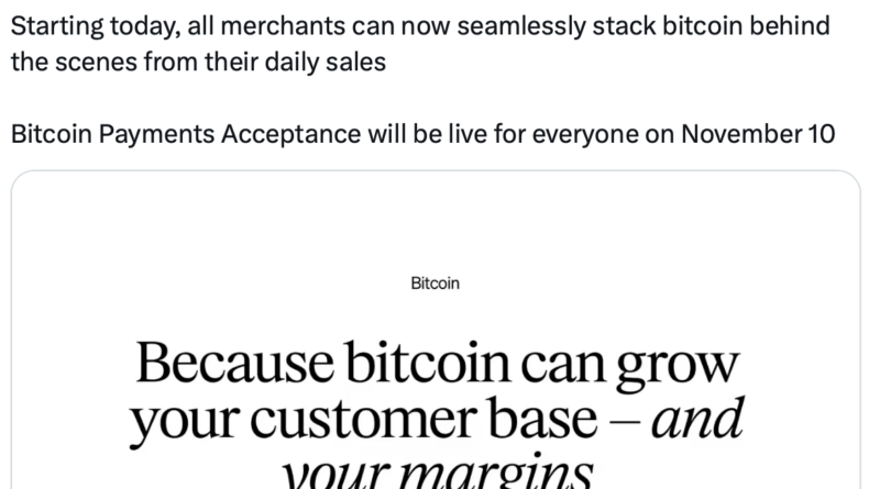 Suter said the feature is designed to make it easier for “millions of businesses” to accept Bitcoin, adding that eligible US sellers will have payments automatically enabled and will receive US dollars by default when customers pay in Bitcoin (BTC). Merchants will also have the option to automatically “stack” Bitcoin from daily sales.