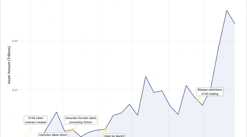 A7A5’s blockchain contract launched in February 2025 and soon began trading on Moscow-based exchange Garantex, which was subsequently sanctioned and shut down.